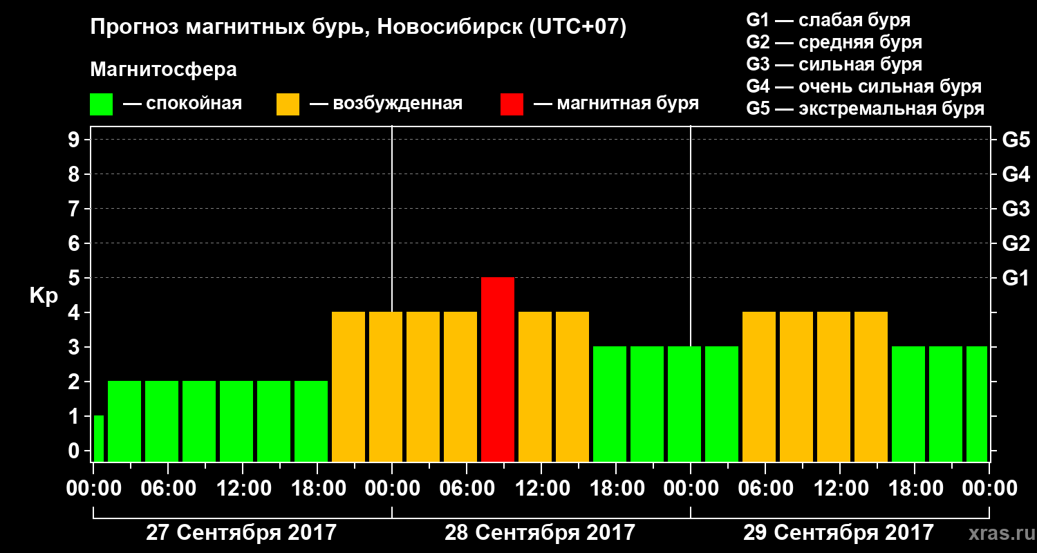 Прогноз магнитных бурь в Новосибирске — 27 сентября 2017 года