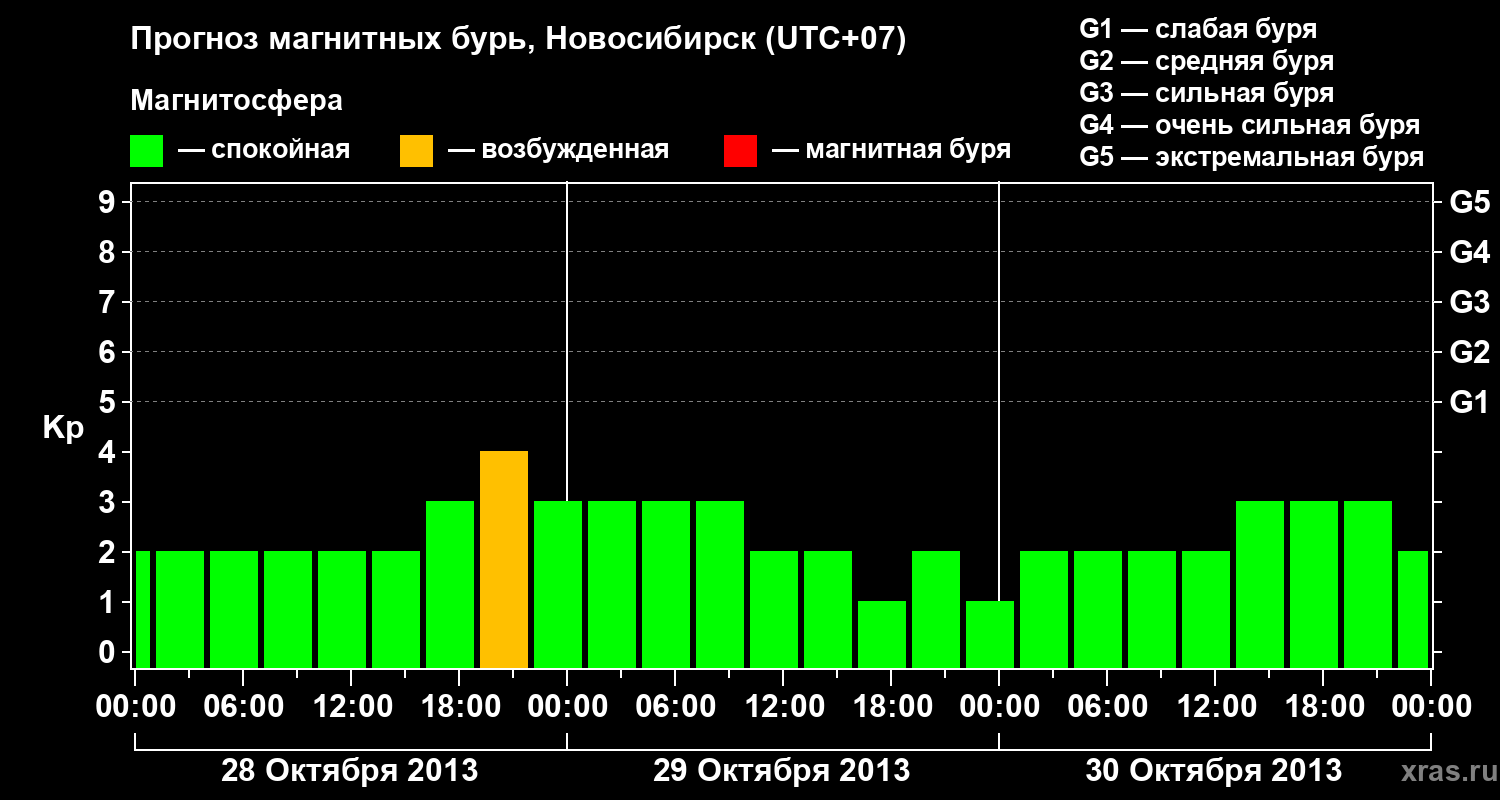 Прогноз магнитных бурь в Новосибирске — 28 октября 2013 года