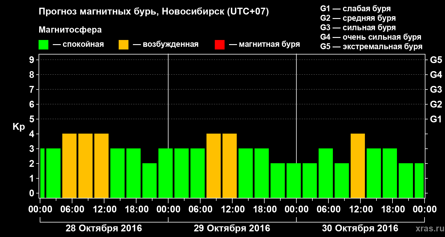 Прогноз магнитных бурь в Новосибирске — 28 октября 2016 года