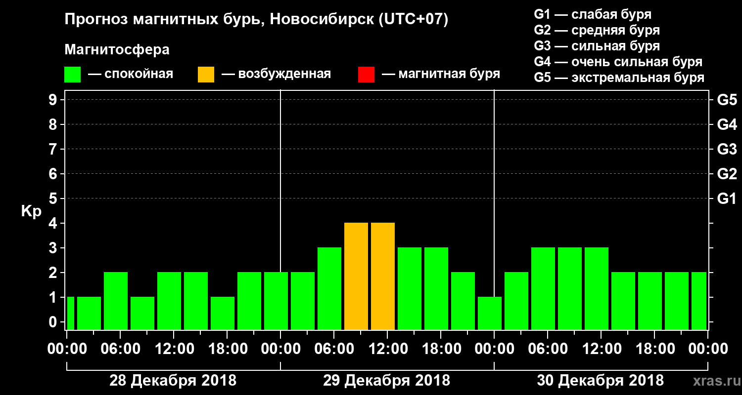 Прогноз магнитных бурь в Новосибирске — 28 декабря 2018 года