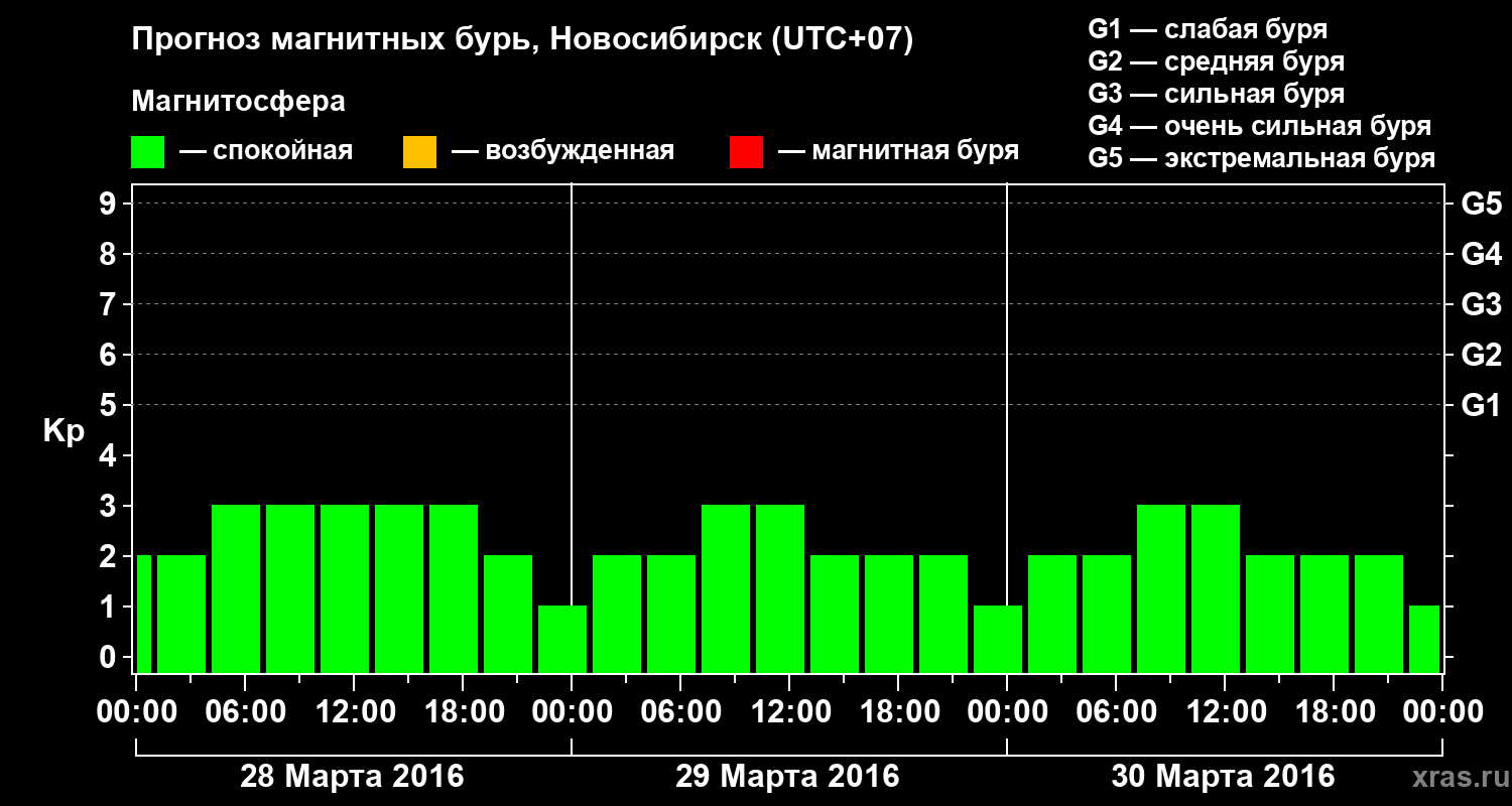 Прогноз магнитных бурь в Новосибирске — 28 марта 2016 года