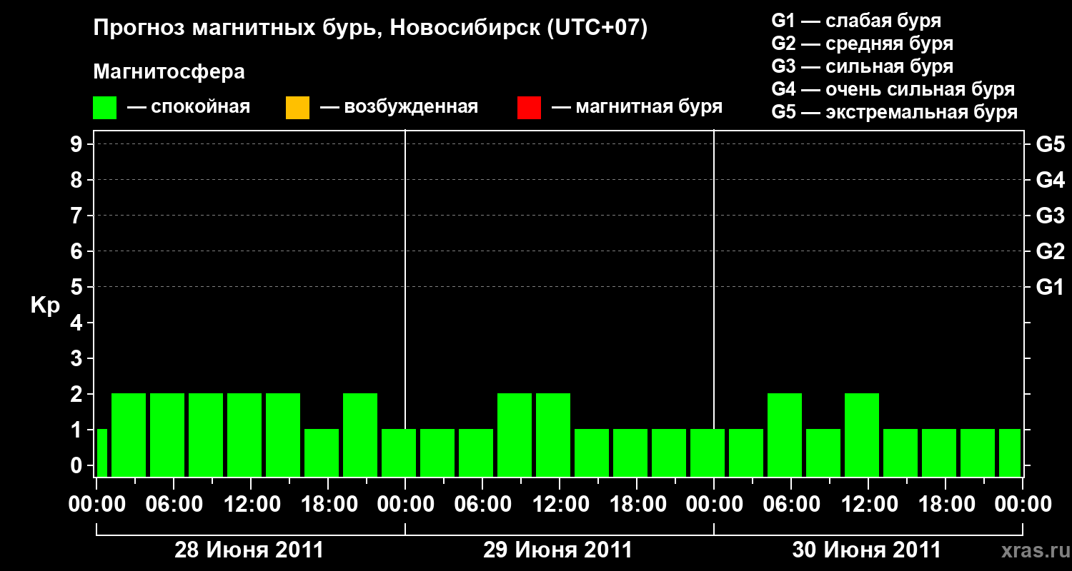 Прогноз магнитных бурь в Новосибирске — 28 июня 2011 года