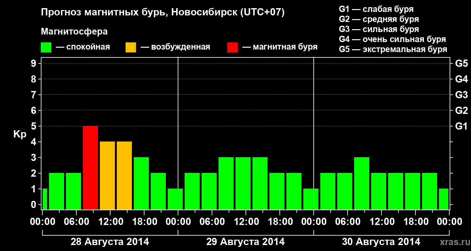 Прогноз магнитных бурь в Новосибирске — 28 августа 2014 года
