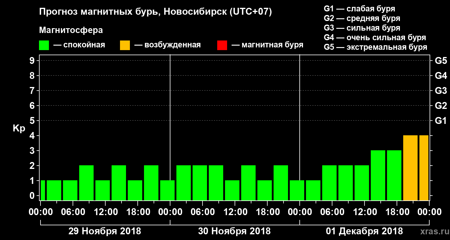 Прогноз магнитных бурь в Новосибирске на 29 ноября 2018 года