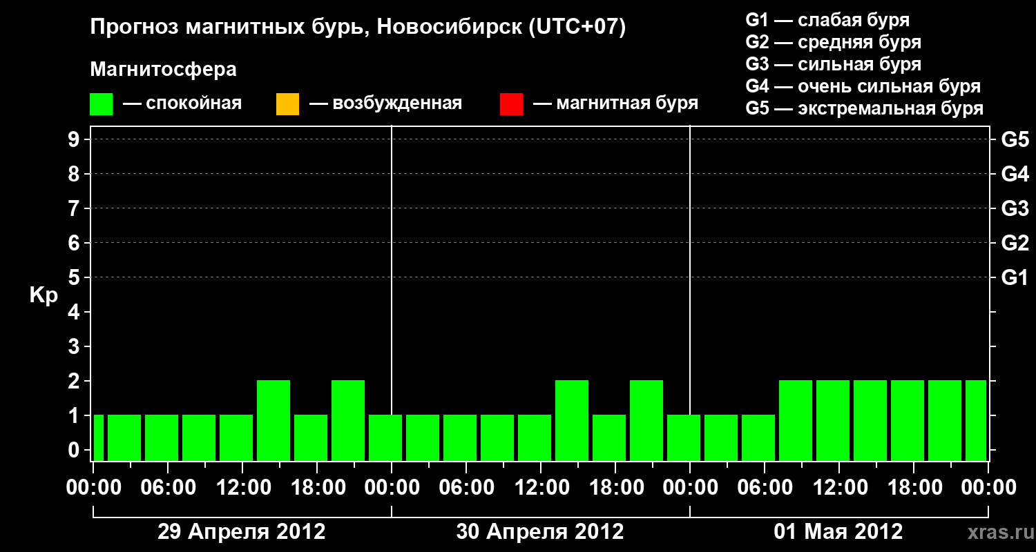 Прогноз магнитных бурь в Новосибирске — 29 апреля 2012 года