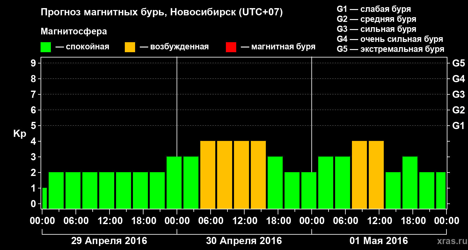 Прогноз магнитных бурь в Новосибирске — 29 апреля 2016 года