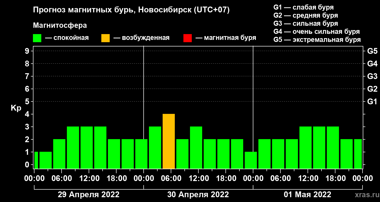 Прогноз магнитных бурь в Новосибирске — 29 апреля 2022 года