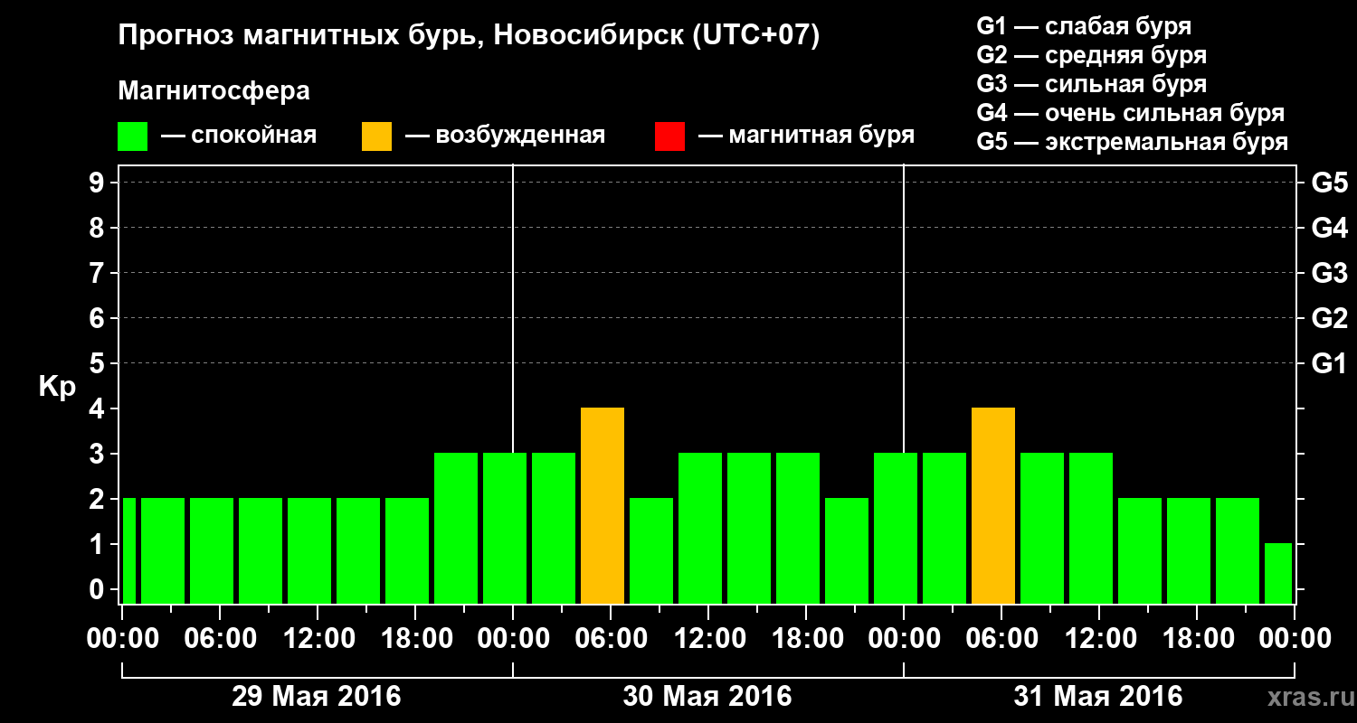 Прогноз магнитных бурь в Новосибирске — 29 мая 2016 года