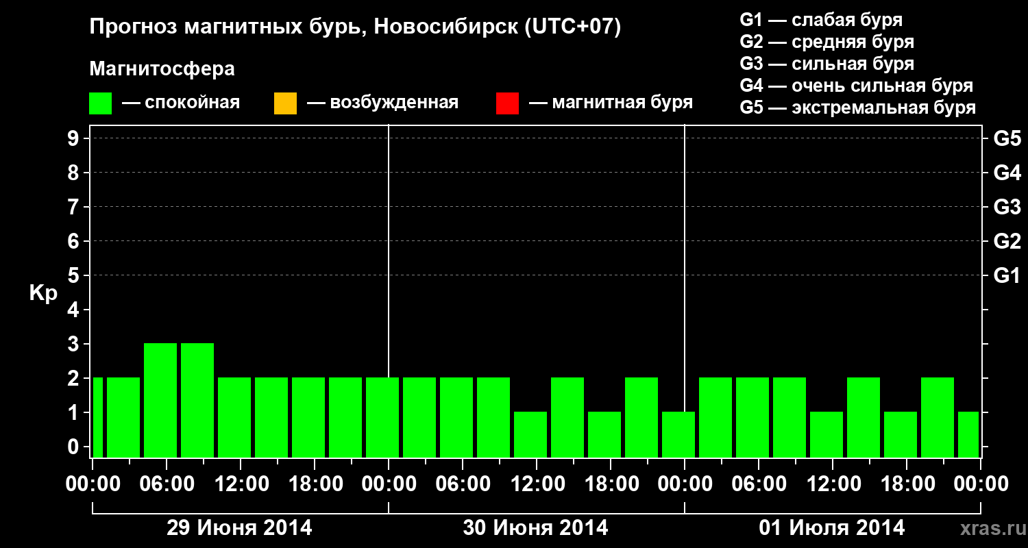 Прогноз магнитных бурь в Новосибирске — 29 июня 2014 года