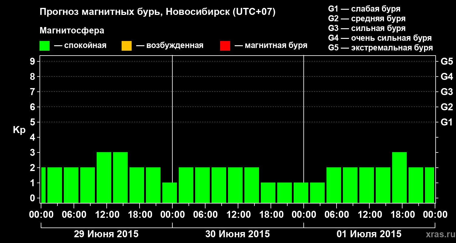 Прогноз магнитных бурь в Новосибирске — 29 июня 2015 года