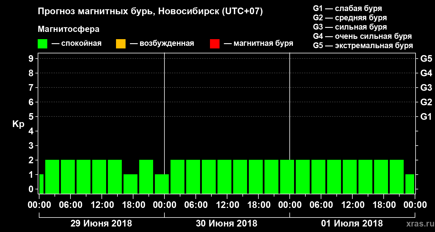 Прогноз магнитных бурь в Новосибирске — 29 июня 2018 года