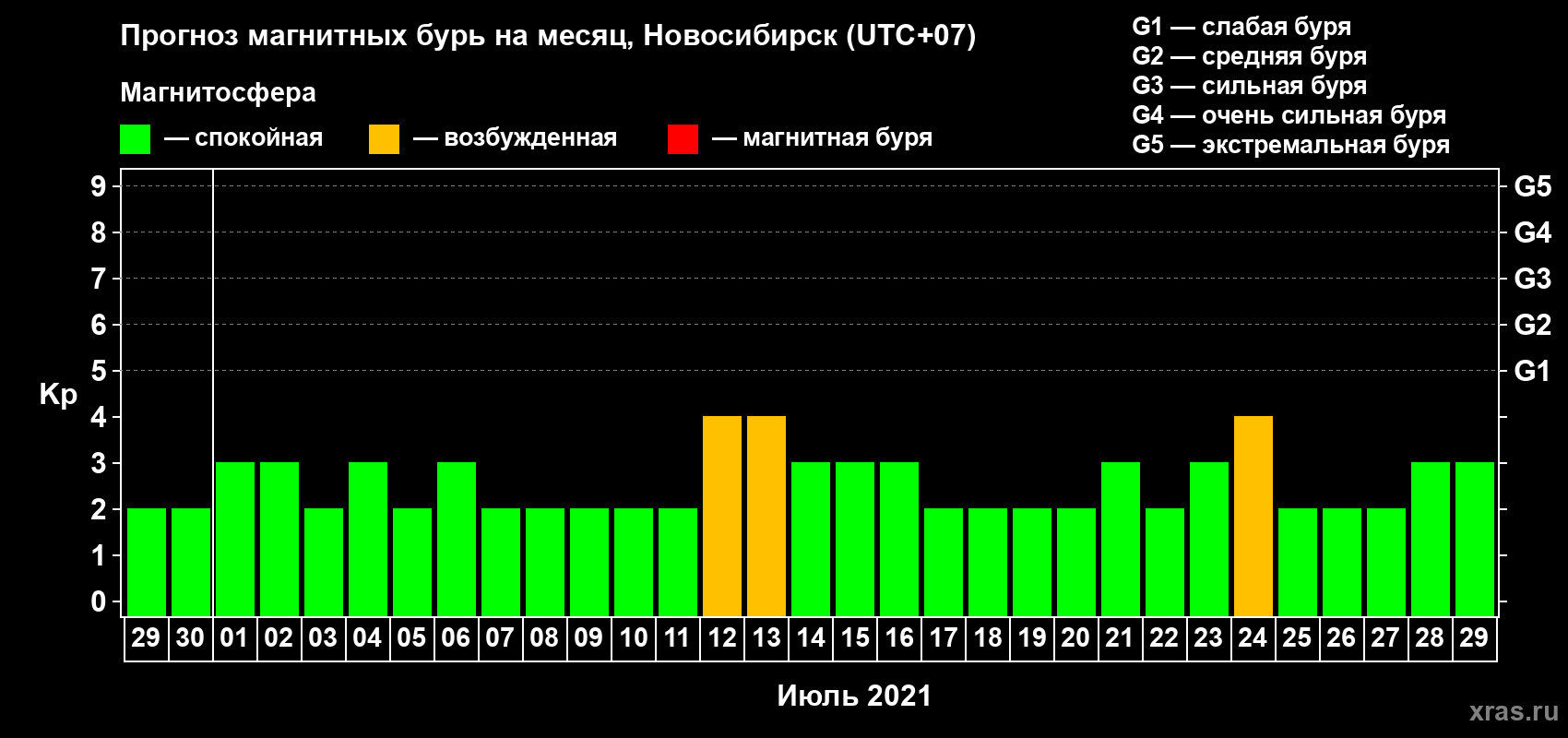 Прогноз магнитных бурь в Новосибирске — 29 июня 2021 года