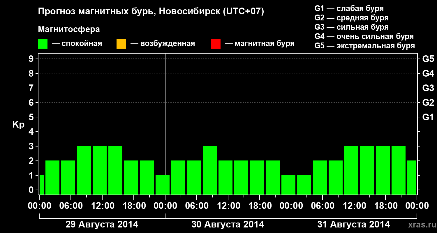 Прогноз магнитных бурь в Новосибирске — 29 августа 2014 года