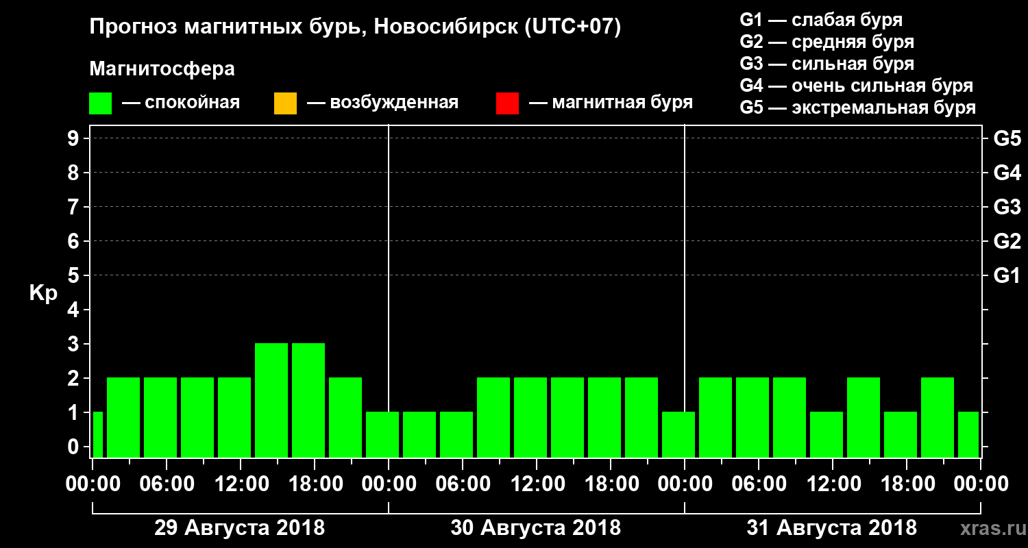 Прогноз магнитных бурь в Новосибирске на 29 августа 2018 года