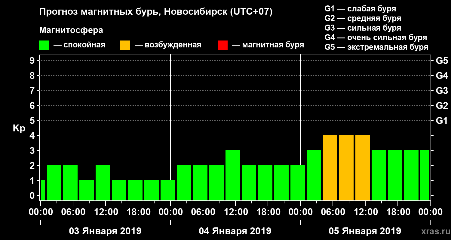 Прогноз магнитных бурь в Новосибирске — 3 января 2019 года