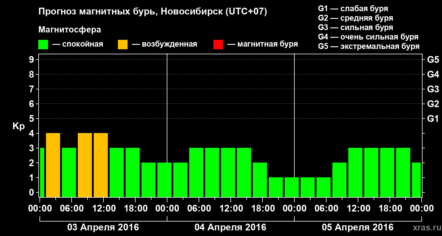 Прогноз магнитных бурь в Новосибирске — 3 апреля 2016 года
