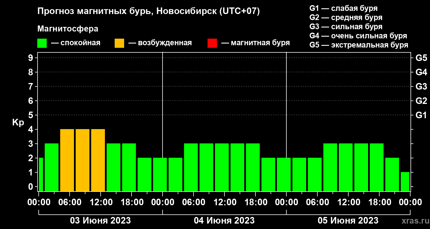 Прогноз магнитных бурь в Новосибирске — 3 июня 2023 года