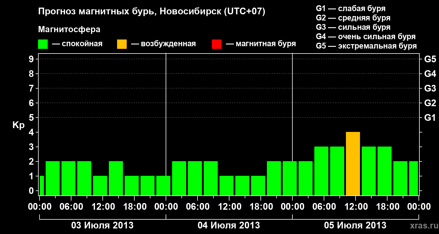 Прогноз магнитных бурь в Новосибирске — 3 июля 2013 года