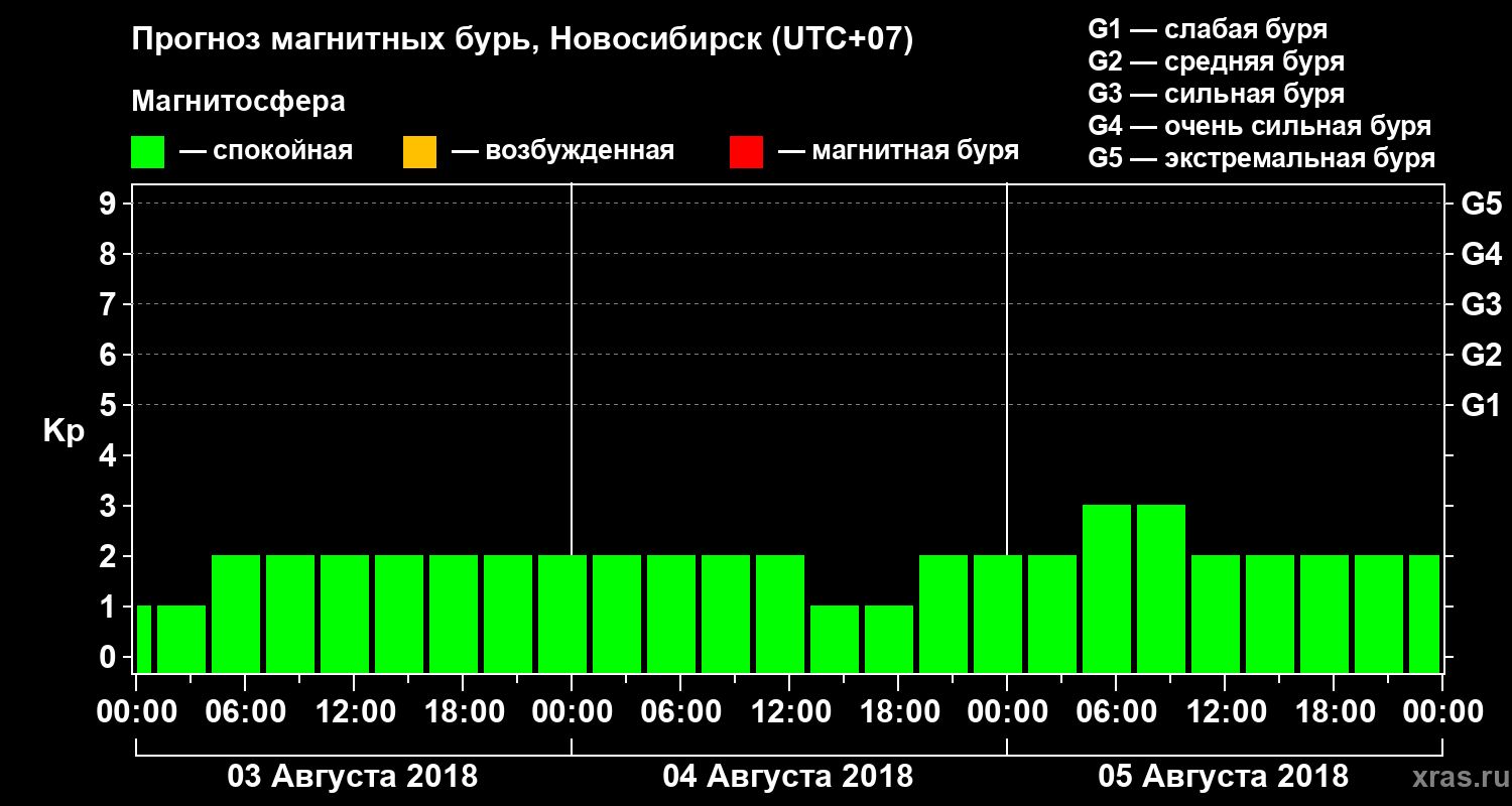 Прогноз магнитных бурь в Новосибирске — 3 августа 2018 года