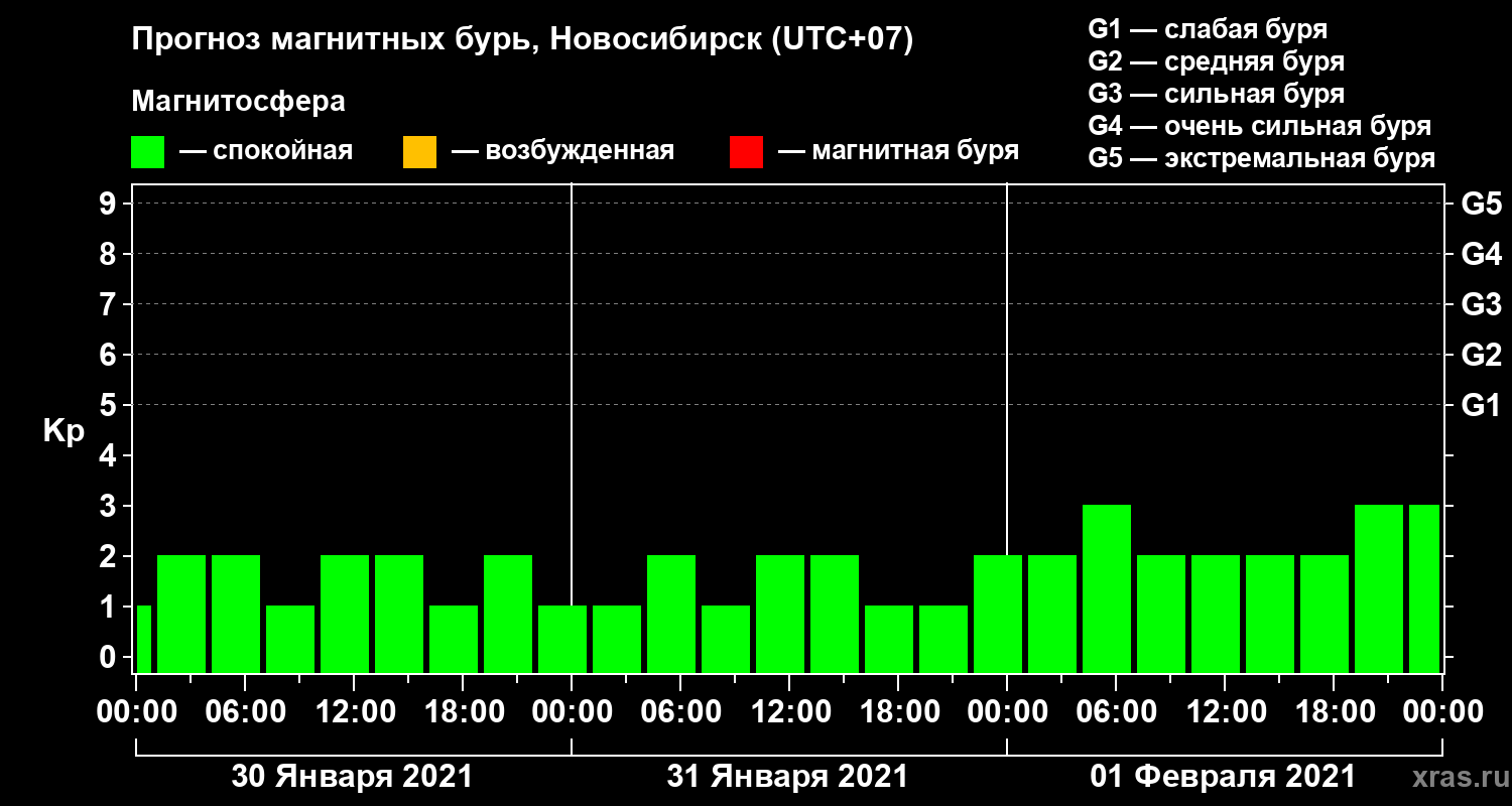 Прогноз магнитных бурь в Новосибирске на 30 января 2021 года