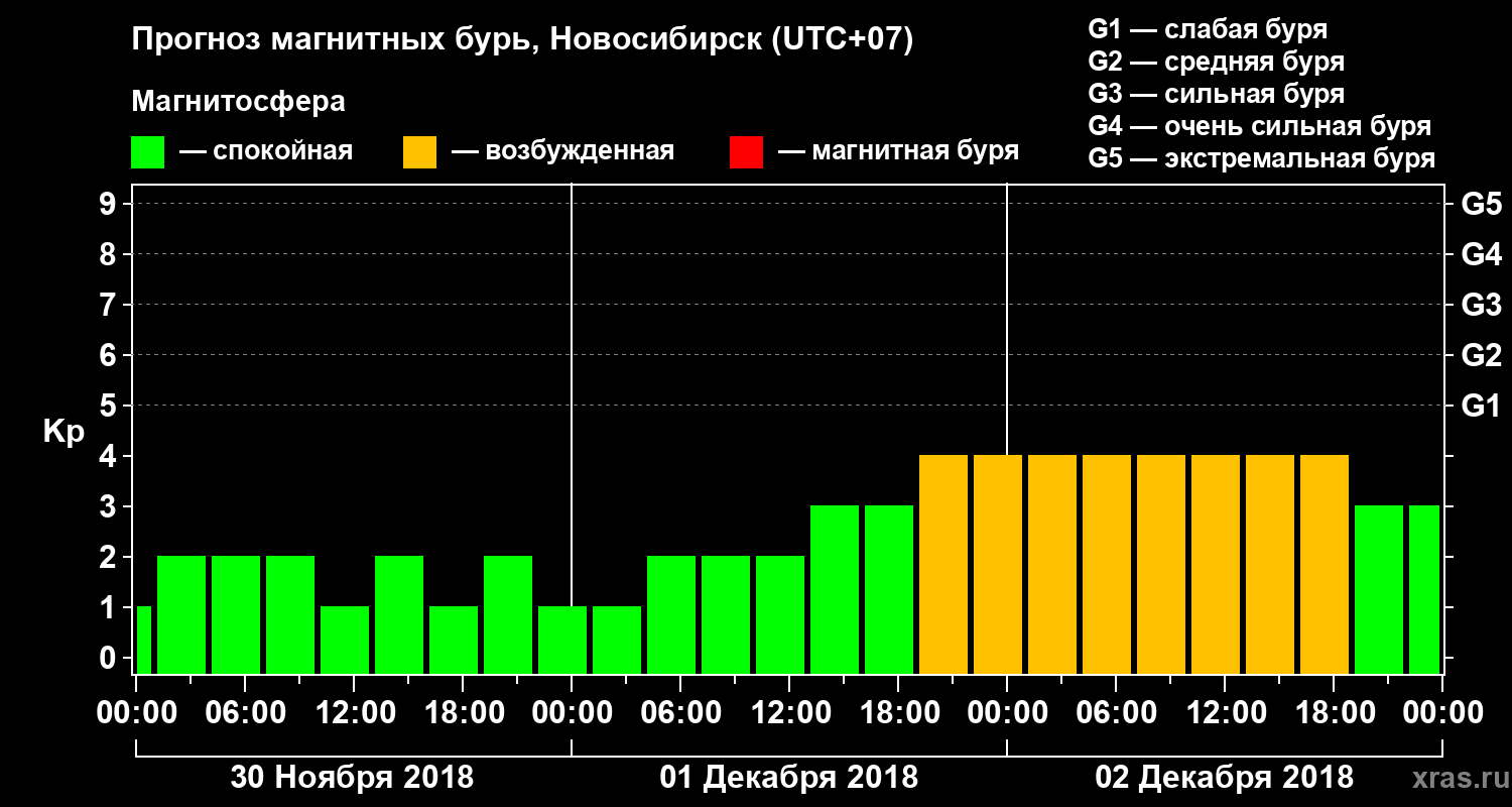 Прогноз магнитных бурь в Новосибирске на 30 ноября 2018 года