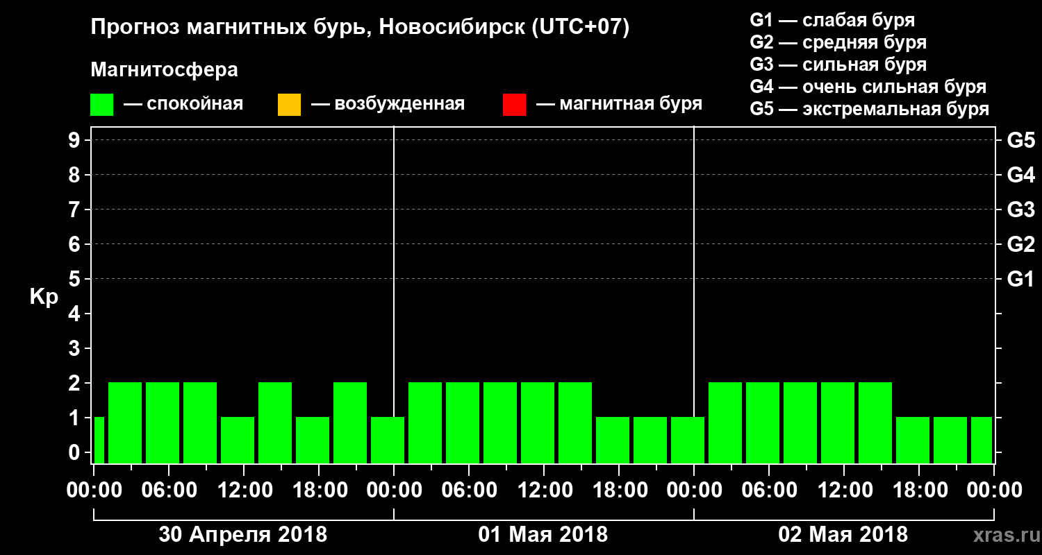 Прогноз магнитных бурь в Новосибирске — 30 апреля 2018 года