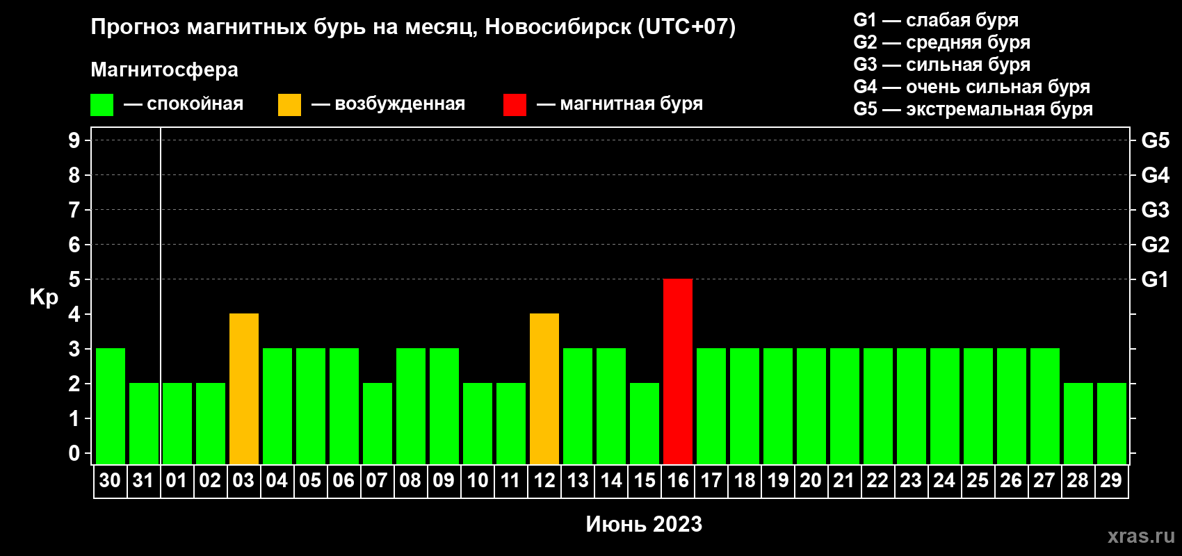 Прогноз магнитных бурь в Новосибирске — 30 мая 2023 года