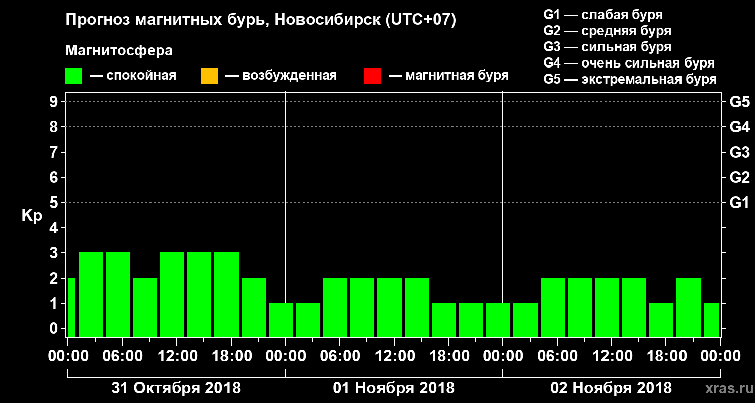 Прогноз магнитных бурь в Новосибирске — 31 октября 2018 года