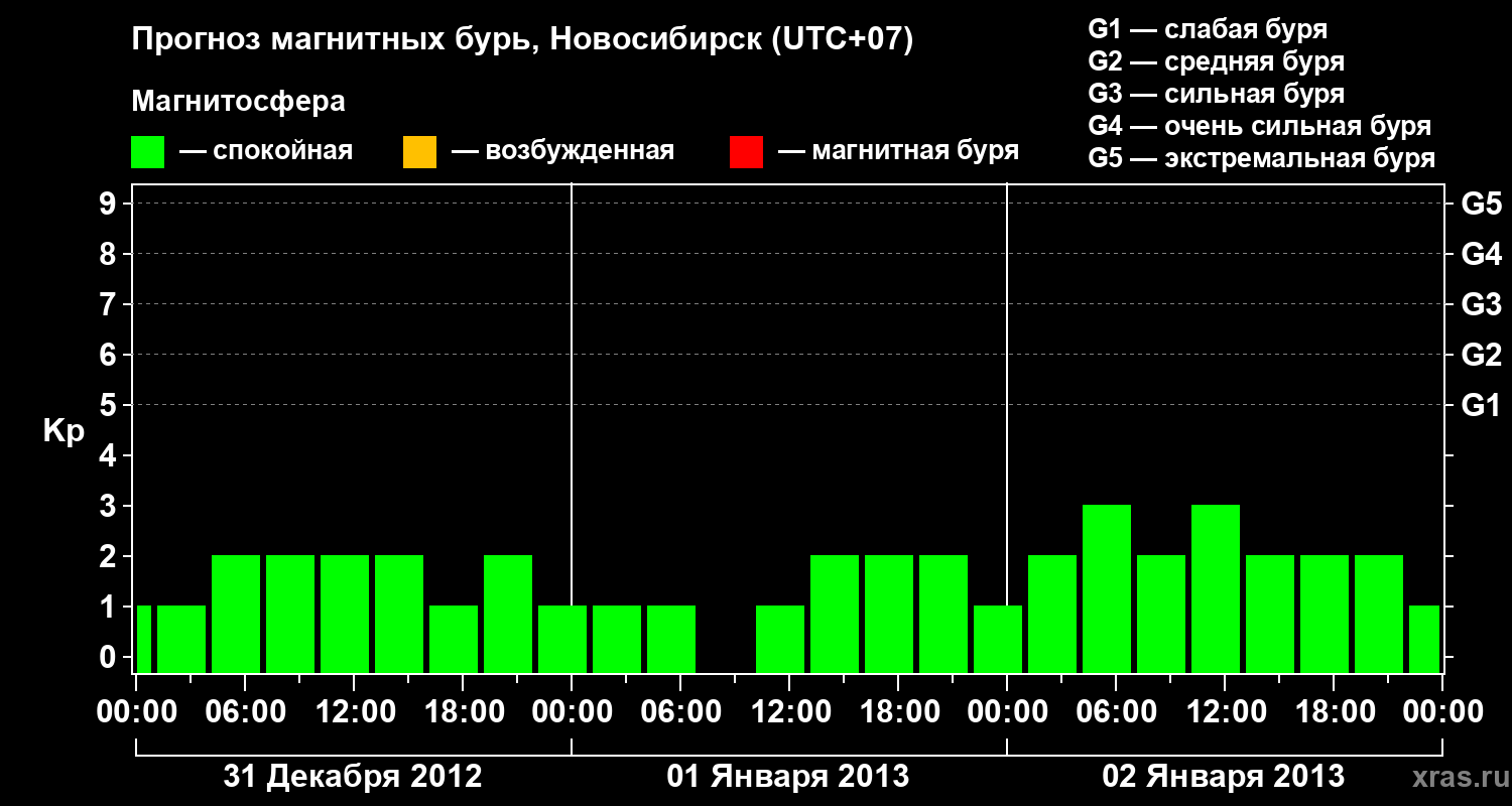 Прогноз магнитных бурь в Новосибирске — 31 декабря 2012 года