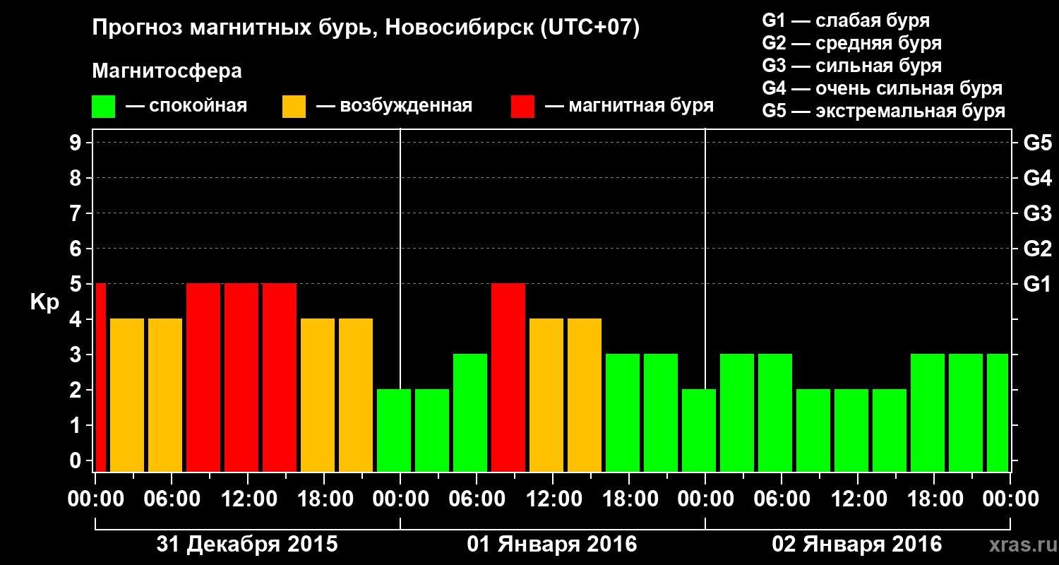 Прогноз магнитных бурь в Новосибирске — 31 декабря 2015 года