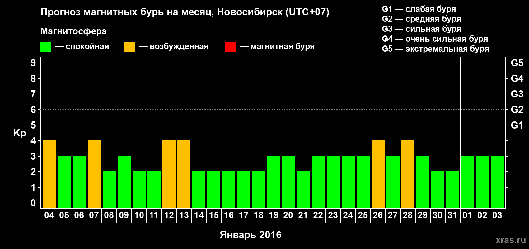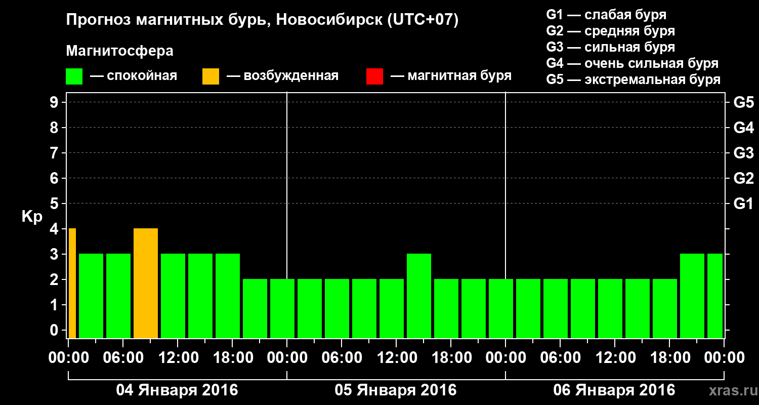 Прогноз магнитных бурь в Новосибирске — 4 января 2016 года