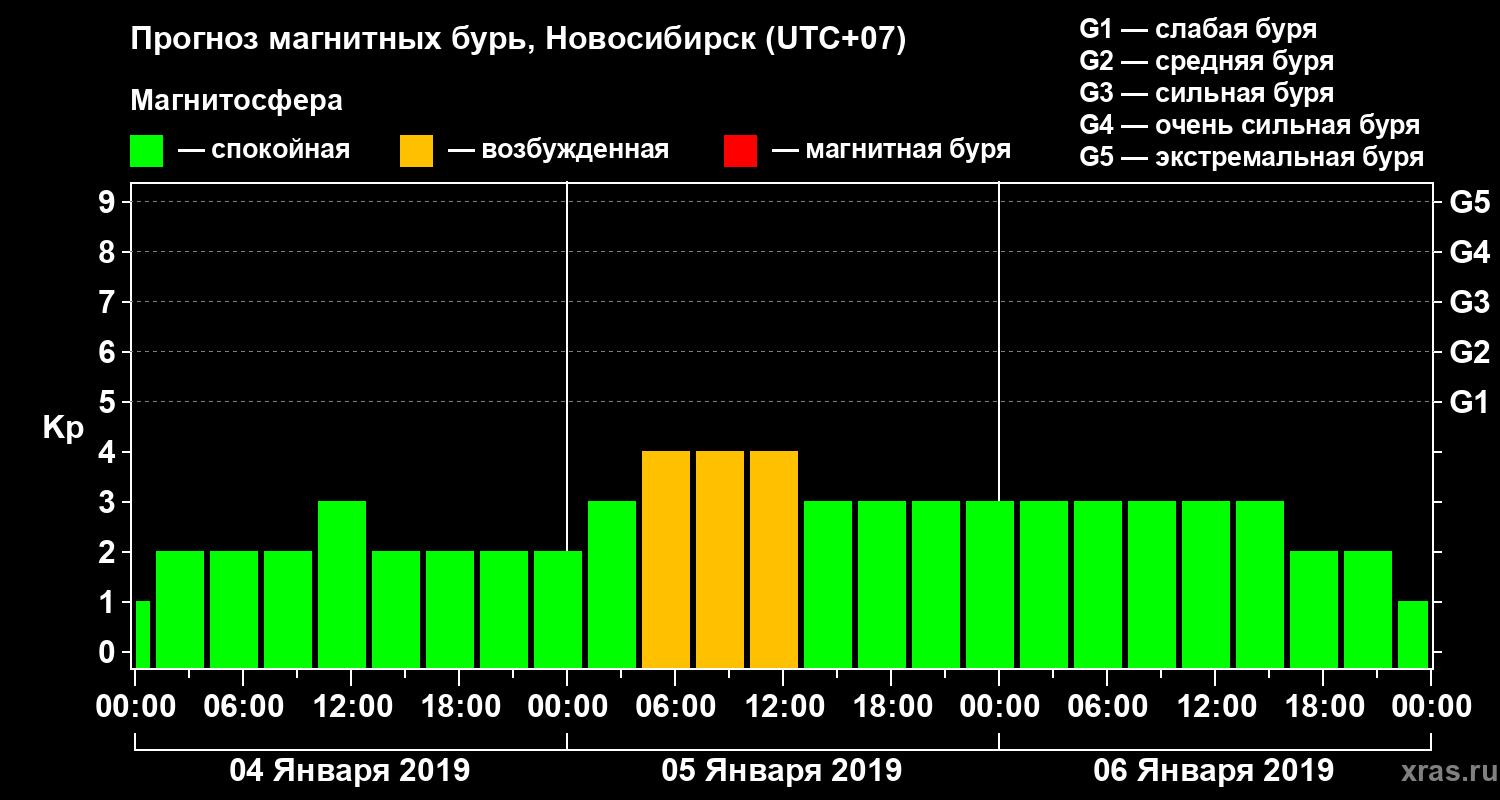 Прогноз магнитных бурь в Новосибирске — 4 января 2019 года