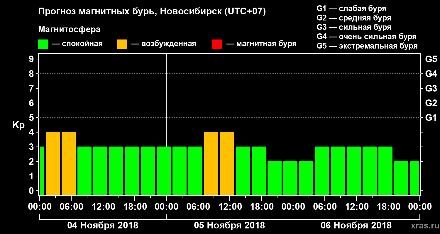 Прогноз магнитных бурь в Новосибирске — 4 ноября 2018 года