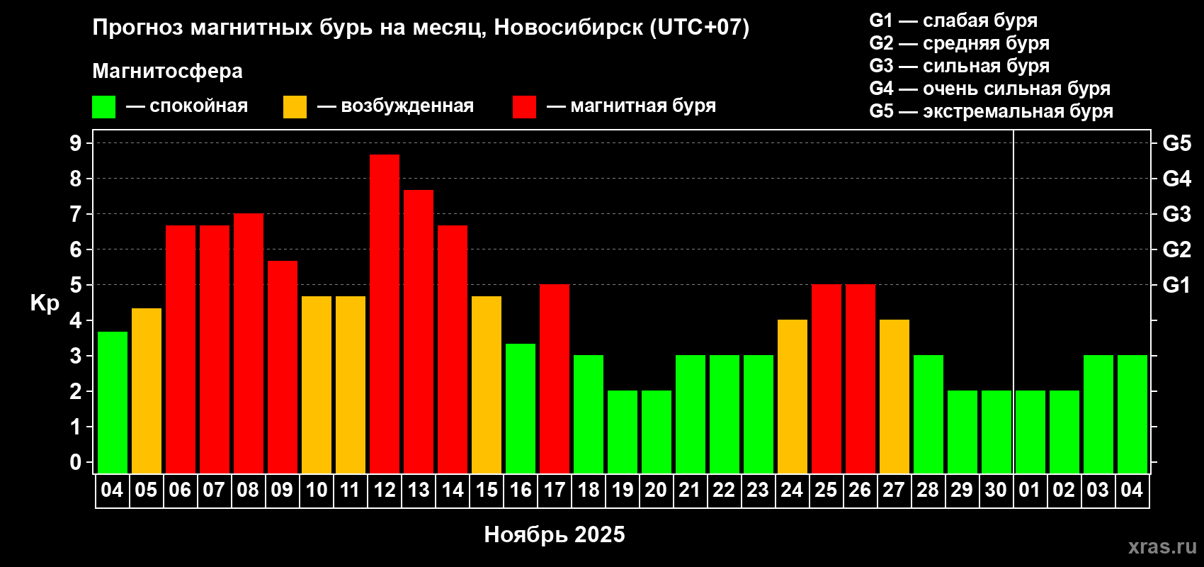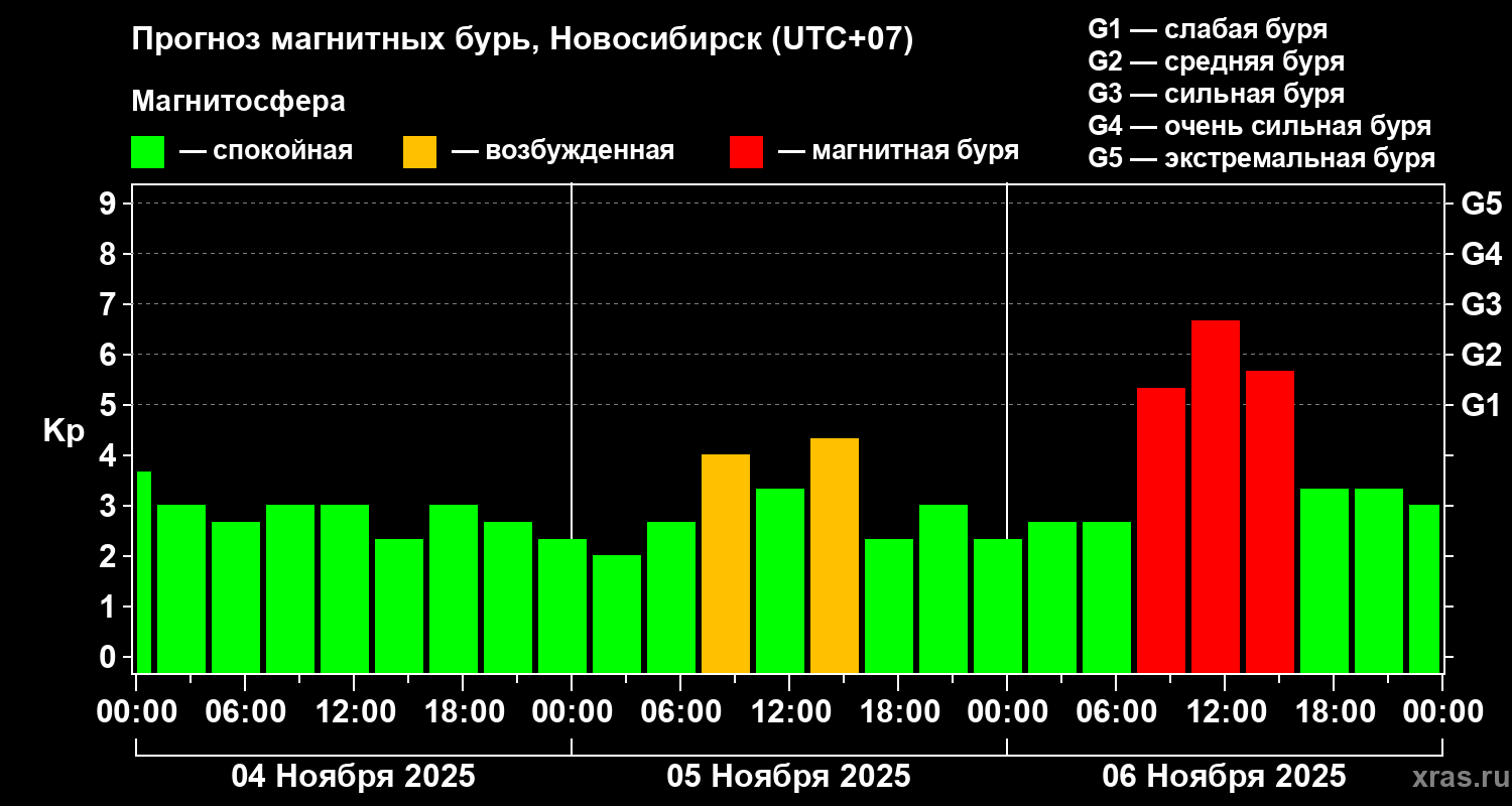 Прогноз магнитных бурь в Новосибирске — 4 ноября 2025 года