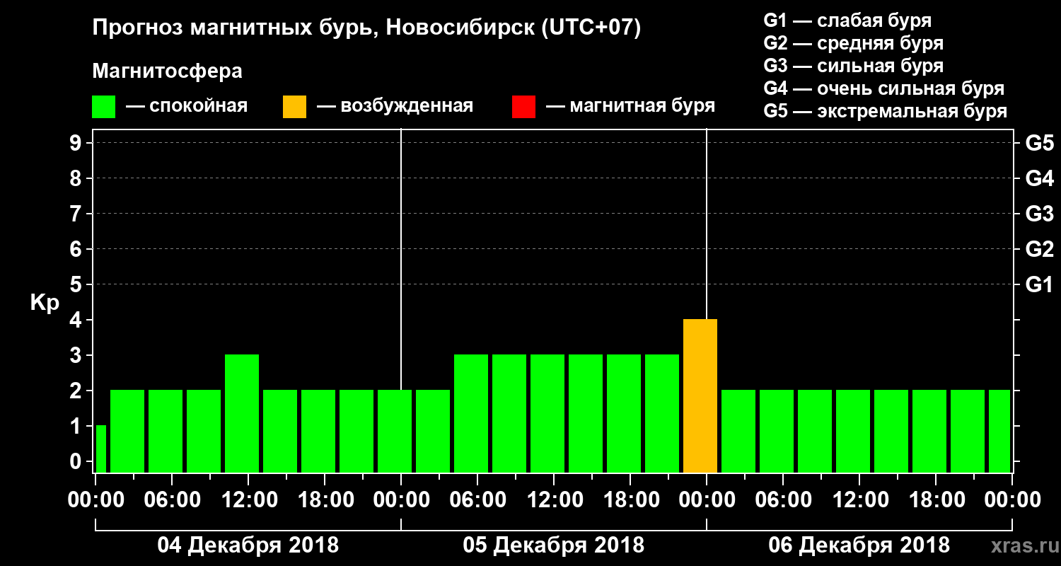 Прогноз магнитных бурь в Новосибирске — 4 декабря 2018 года
