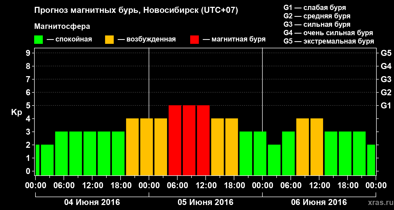 Прогноз магнитных бурь в Новосибирске — 4 июня 2016 года