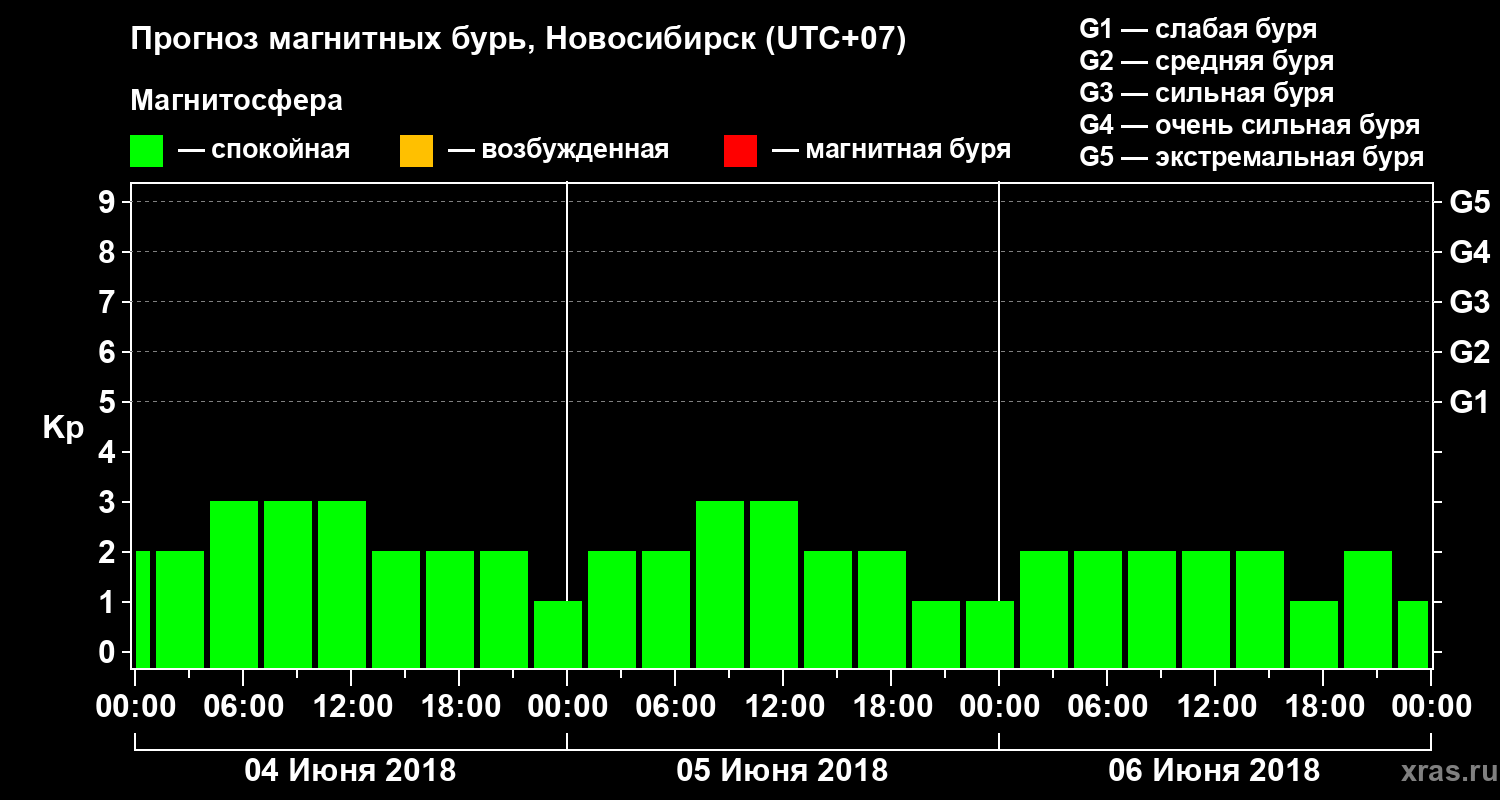 Прогноз магнитных бурь в Новосибирске — 4 июня 2018 года
