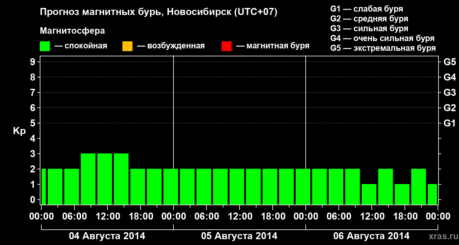 Прогноз магнитных бурь в Новосибирске — 4 августа 2014 года