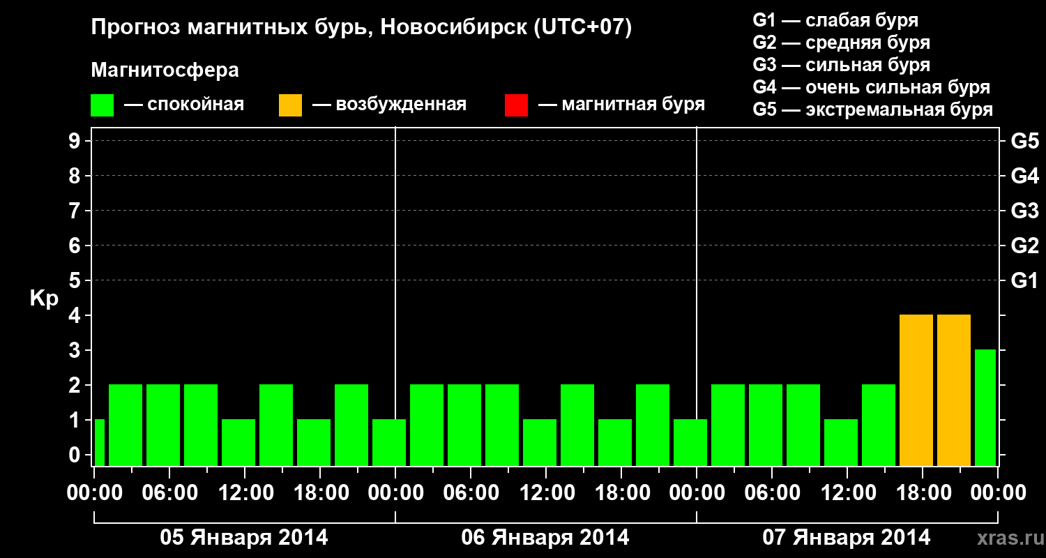 Прогноз магнитных бурь в Новосибирске — 5 января 2014 года