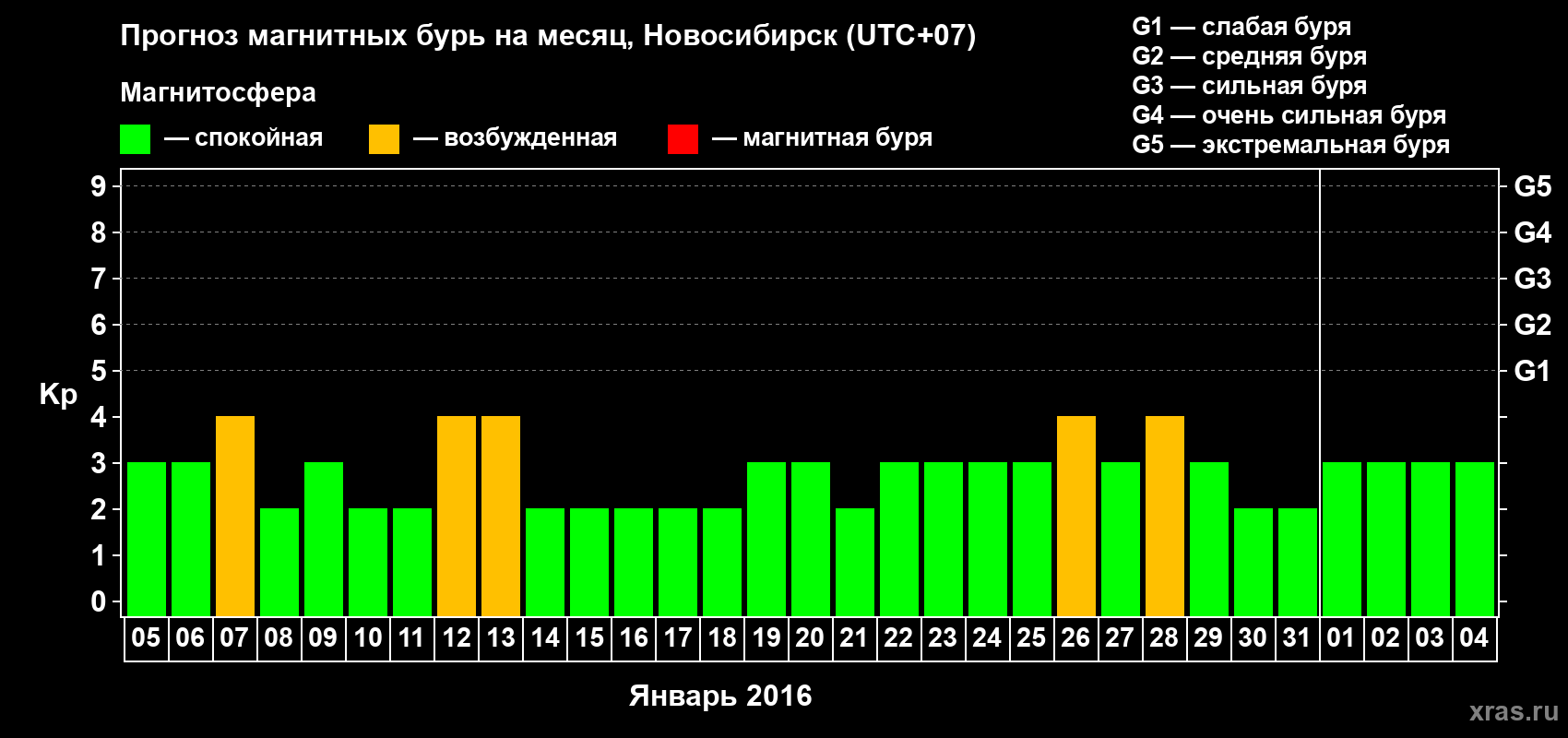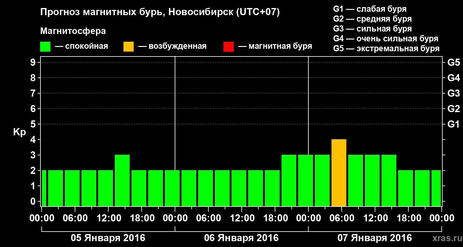 Прогноз магнитных бурь в Новосибирске — 5 января 2016 года