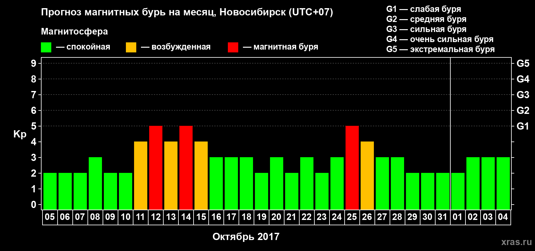 Прогноз магнитных бурь в Новосибирске — 5 октября 2017 года