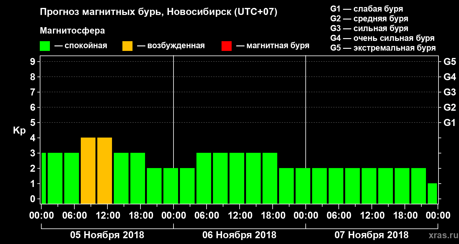 Прогноз магнитных бурь в Новосибирске — 5 ноября 2018 года