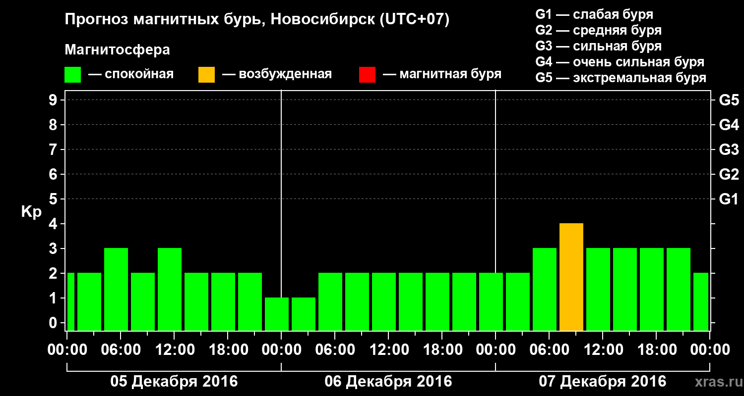 Прогноз магнитных бурь в Новосибирске — 5 декабря 2016 года