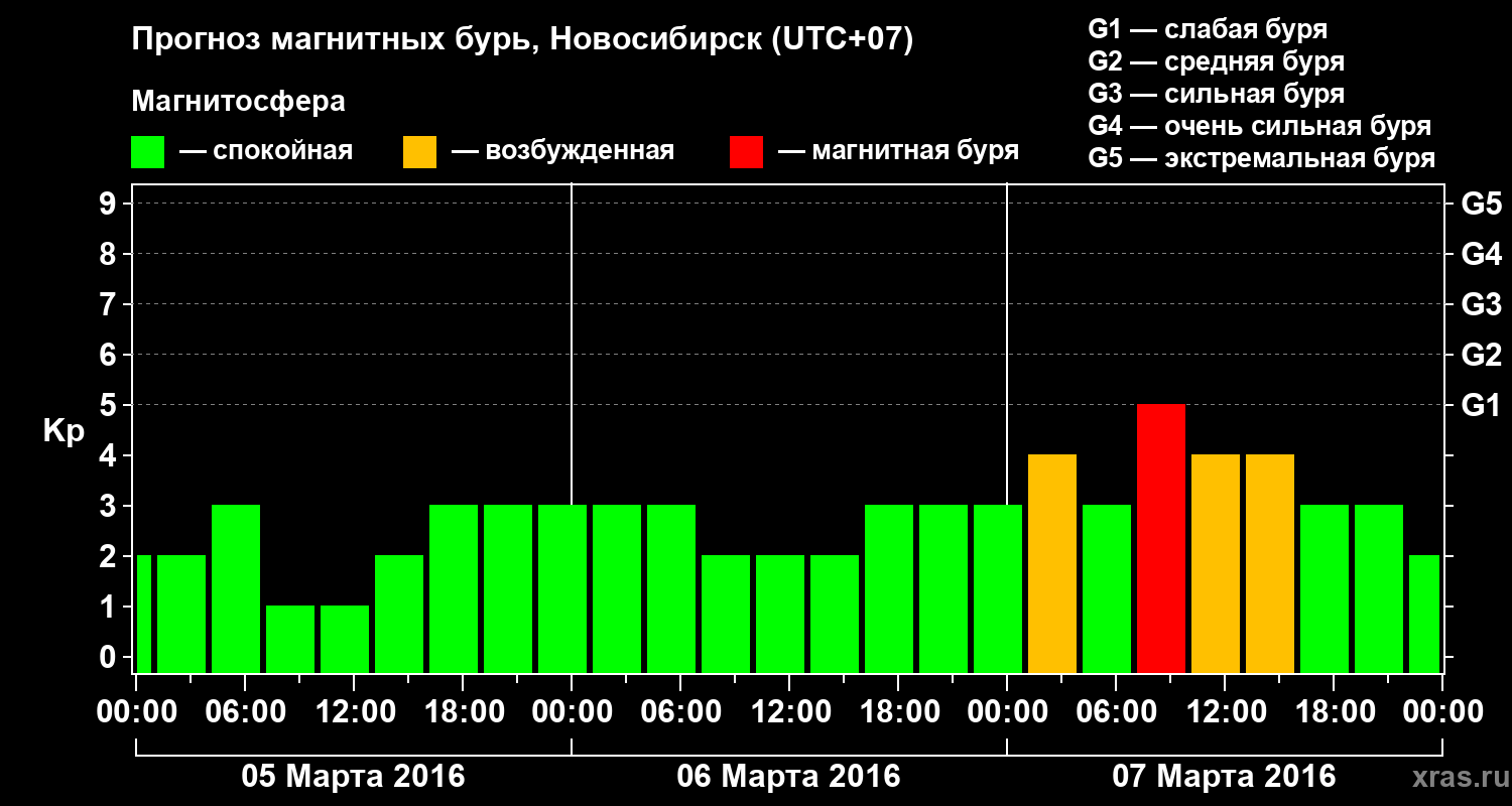 Прогноз магнитных бурь в Новосибирске — 5 марта 2016 года