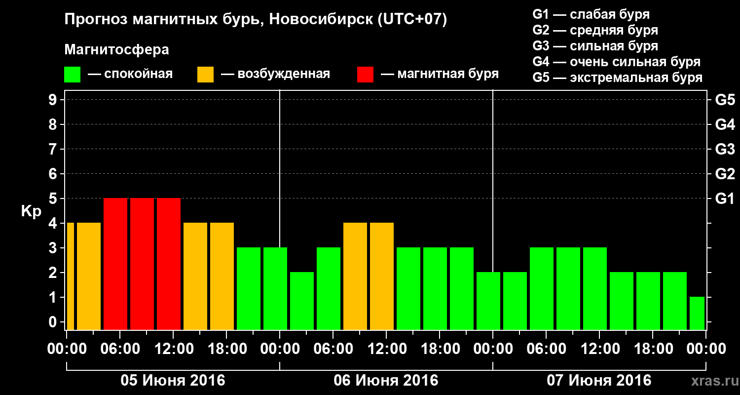 Прогноз магнитных бурь в Новосибирске — 5 июня 2016 года
