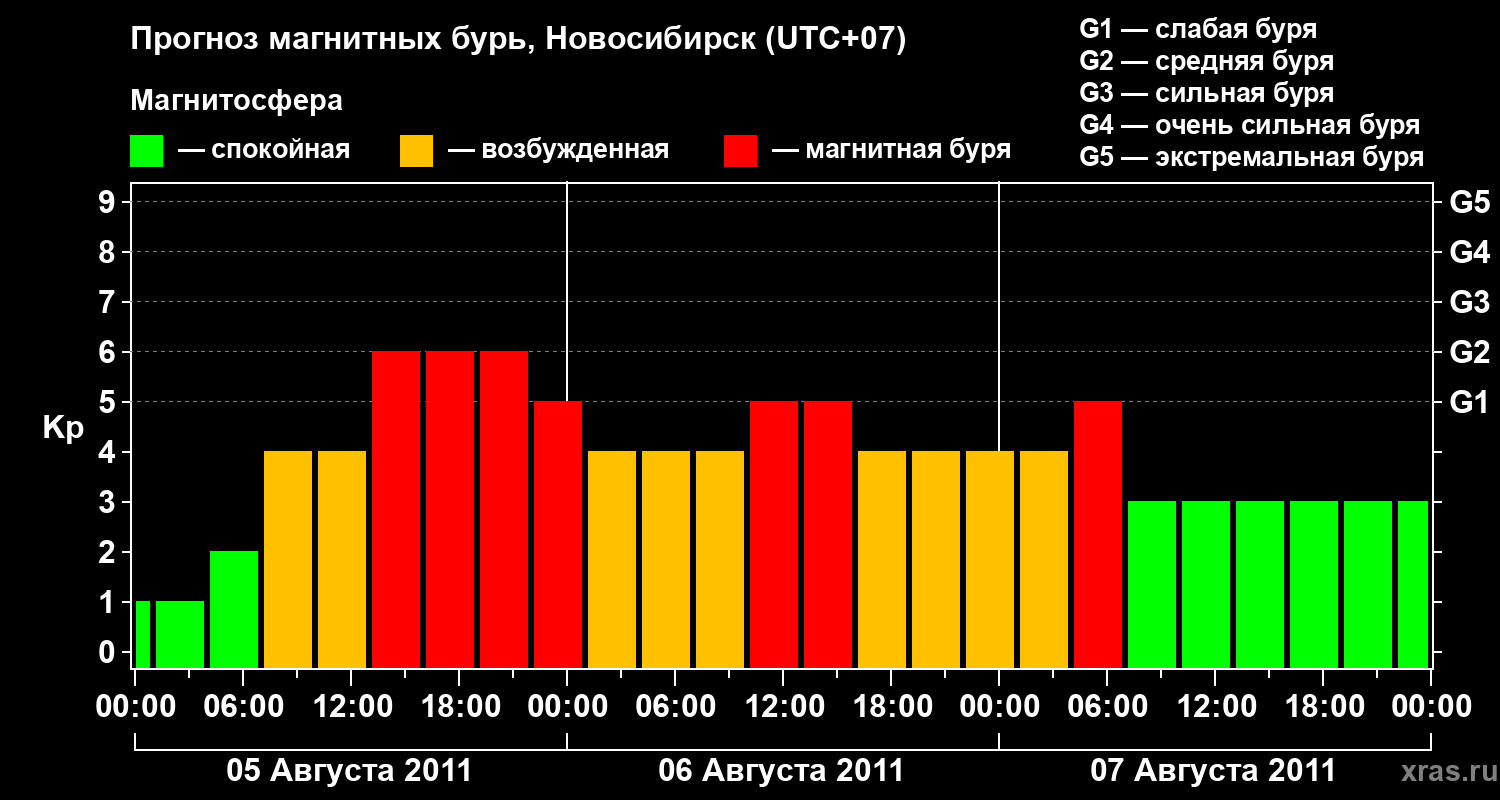 Прогноз магнитных бурь в Новосибирске — 5 августа 2011 года