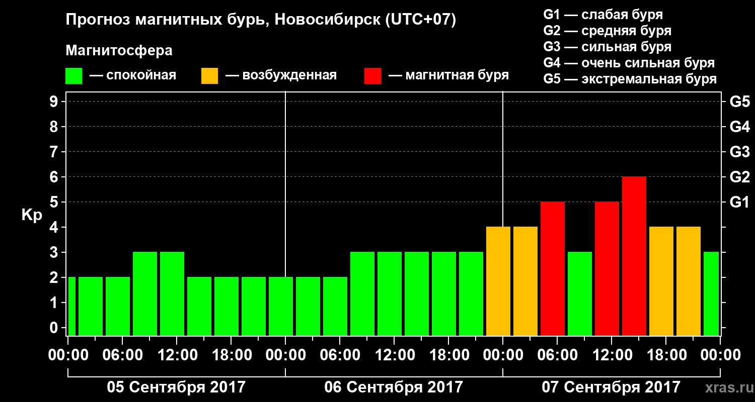 Прогноз магнитных бурь в Новосибирске — 5 сентября 2017 года