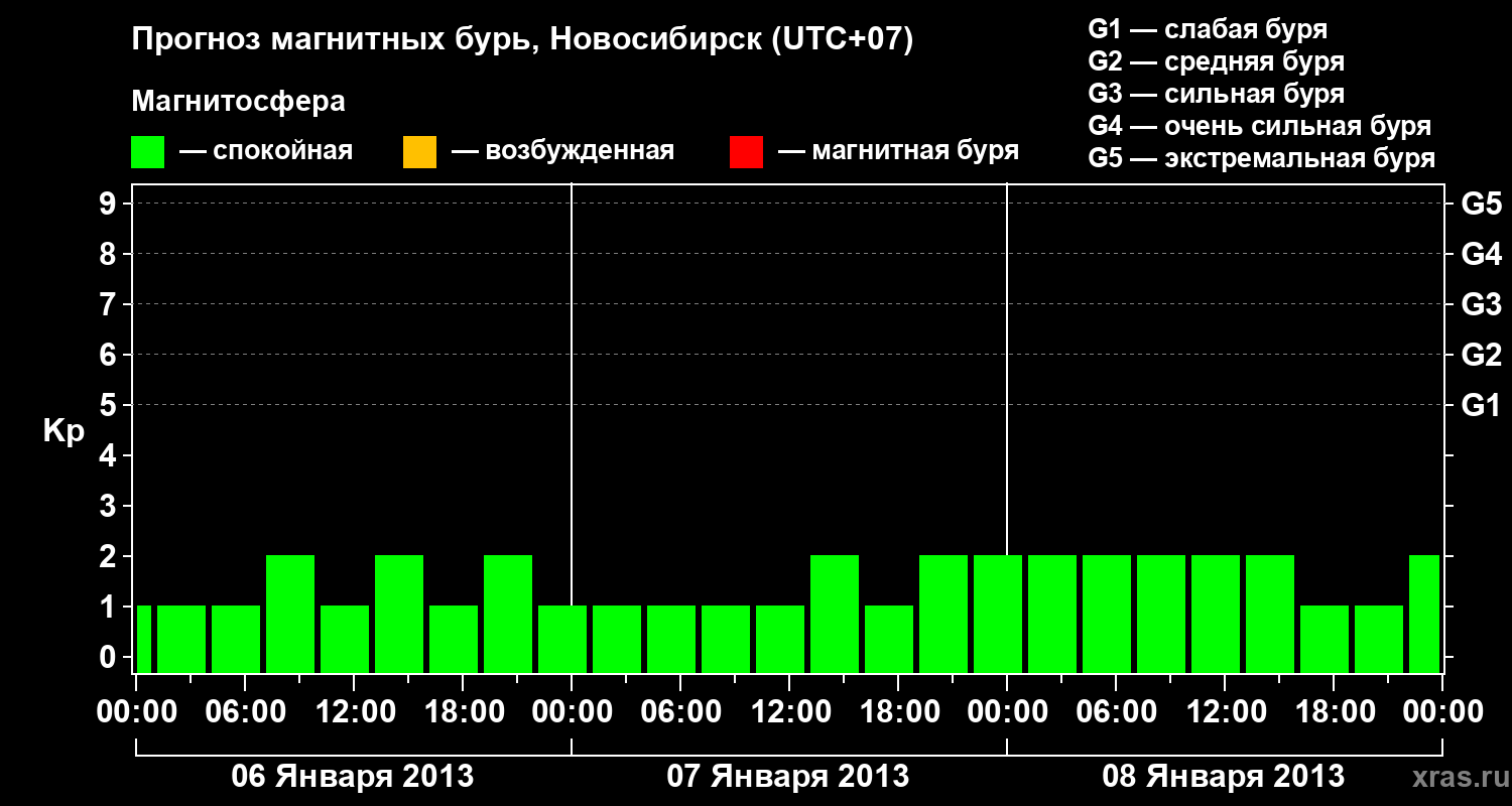 Прогноз магнитных бурь в Новосибирске — 6 января 2013 года