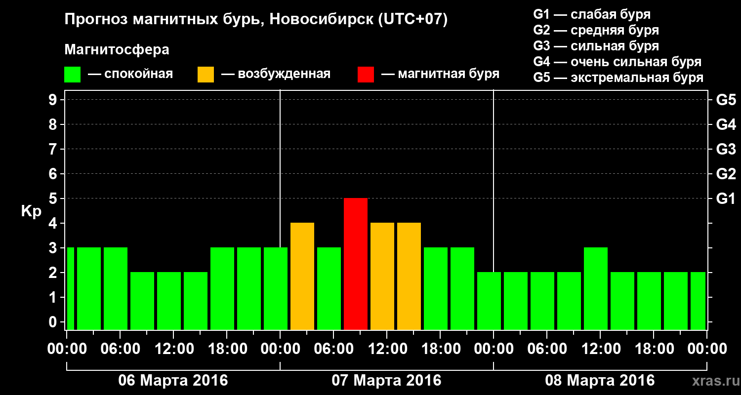 Прогноз магнитных бурь в Новосибирске — 6 марта 2016 года