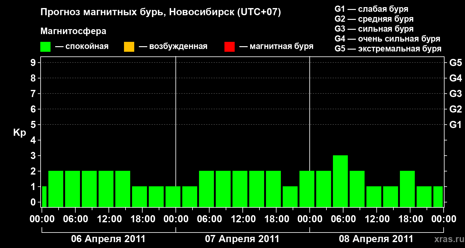 Прогноз магнитных бурь в Новосибирске — 6 апреля 2011 года
